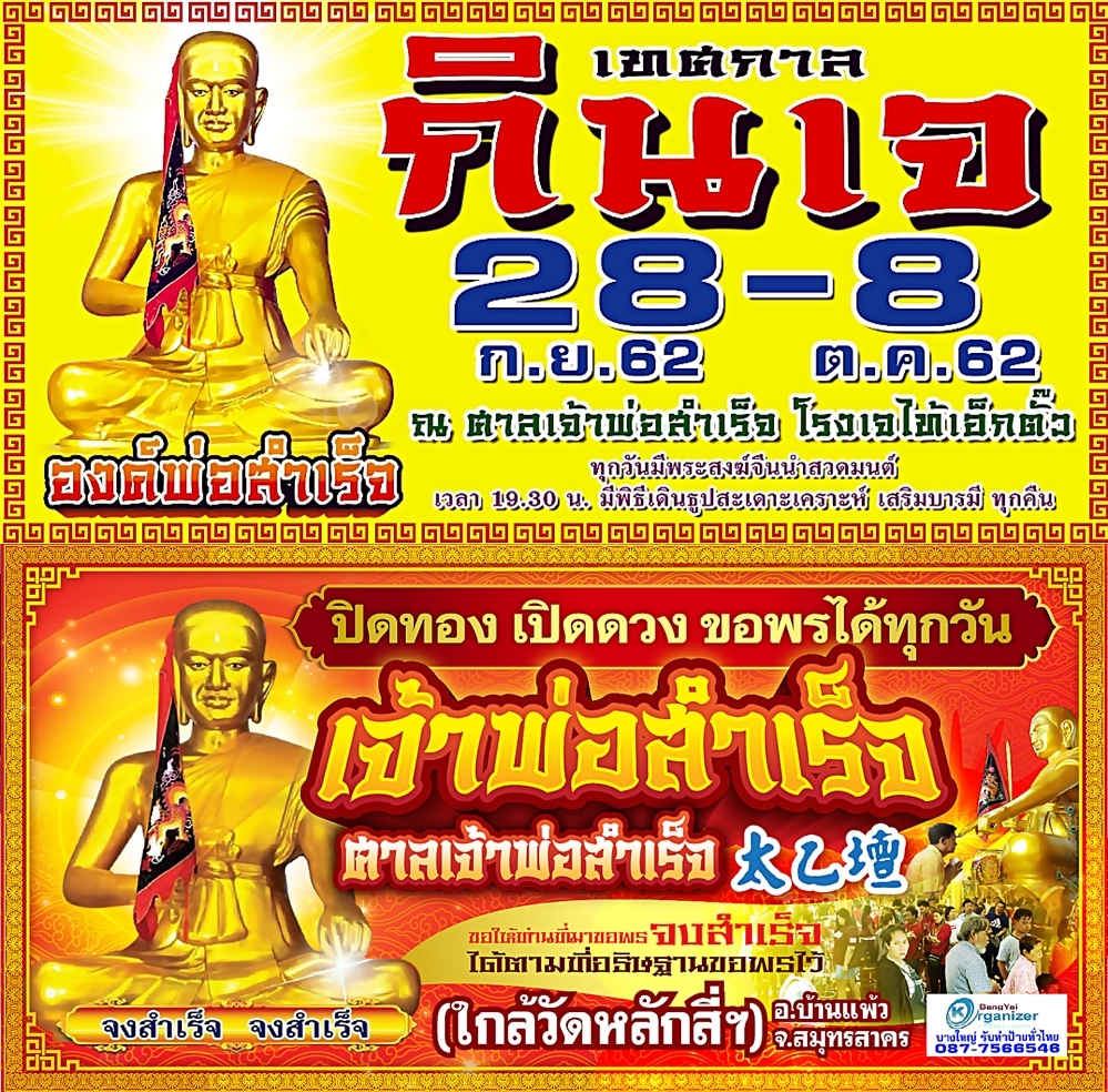 หรือกดลิงค์ได้ที่ https://www.facebook.com/ศาลเจ้าพ่อสำเร็จ-โรงเจ-ไท้-เอ็ก-ตั๊ว-446445542096183/