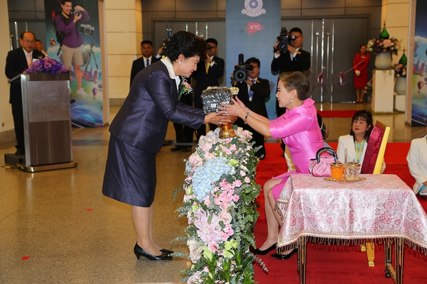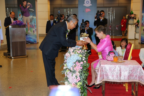 นางณริภา ศรีสว่างวัฒน์ นายกสมาคมธุรกิจการถ่ายภาพ ประธานจัดงาน PHOTO FAIR 2019 มอบเงินแด่ผู้แทนพระองค์ เชิญไปถวาย พระเจ้าวรวงศ์เธอ พระองค์เจ้าโสมสวลี กรมหมื่นสุทธนารีนาถ เพื่อทรงใช้สอยตามพระอัธยาศัย และมอบของที่ระลึกแด่ หม่อมหลวงสราลี กิติยากร ผู้แทนพระองค์