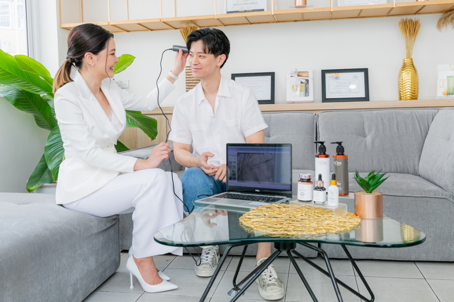 ถัดมาที่นักธุรกิจหนุ่ม วสุวัส คูหาเปรมกิจ เผยว่า “ผมเป็นคนชอบแต่งตัว ชอบทำกิจกรรมและชอบท่องเที่ยวทะเลอยู่เป็นประจำ ทำให้แต่ละวันต้องไม่พลาดจัดแต่งทรงผมให้ดูดีอยู่เสมอ ถึงแม้ว่าผมสั้นจะง่ายต่อการดูแลรักษา แต่ถ้าหากเจอแสงแดดและสารเคมีจัดแต่งทรงผมเป็นประจำทุกวันก็อาจจะทำร้ายเส้นผมและหนังศีรษะได้ ยิ่งอายุที่เพิ่มขึ้นก็อาจจะมีความกังวลเกี่ยวกับปัญหาผมร่วง ผมบางตามมา ทำให้ก็ต้องหมั่นใส่ใจดูแลเส้นผมและหนังศีรษะ ตั้งแต่การเลือกใช้ผลิตภัณฑ์ ดร.อร คอสเม่ ในการรักษาความสะอาด ใช่วิตามินบำรุงออนนาเกน แฮร์ เซรั่ม ซึ่งโดยส่วนตัวแล้วชอบผลิตภัณฑ์ที่ไม่มีส่วนผสมของสารพาราเบน และอยากแนะนำสำหรับคนที่มีความกังวลหรือมีปัญหาเกี่ยวกับเส้นผมและหนังศีรษะว่า การได้รับคำแนะนำจากผู้เชี่ยวชาญจะช่วยให้เราได้ทราบถึงปัญหาและวิธีดูแลรักษาได้ดีที่สุด”