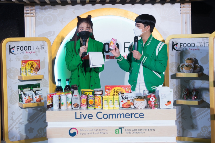 Korea Agro-Trade Center, กรุงเทพฯ ปิดฉากความสนุกสุดมันส์ส่งท้ายปีกับมหกรรมอาหารเกาหลีสุดยิ่งใหญ่ “K-Food Fair 2021 in Bangkok: Korea Calling” เพื่อให้ผู้ชื่นชอบอาหารและเครื่องดื่มได้เลือกซื้อสินค้านำเข้าโดยผู้ส่งออกชั้นนำจากประเทศเกาหลี ซึ่งในปีนี้พิเศษมากยิ่งขึ้นด้วยการผสมผสานกันอย่างลงตัวของ Pop-up Booth ที่จัดเป็นพื้นที่แสดงสินค้าผลิตภัณฑ์อาหารและเครื่องดื่มนำเข้าจากประเทศเกาหลีมากมายหลายชนิด และกิจกรรม Livestream ออนไลน์ ภายใต้แนวคิดวิถีชีวิตยุคใหม่หลังสถานการณ์โควิด-19 โดยถ่ายทอดสดผ่านทางเฟซบุ๊กแฟนเพจ Enjoy K Food ซึ่งมีดารา-ศิลปินชื่อดังของเมืองไทย ได้แก่ เต ตะวัน วิหครัตน์, นิว ฐิติภูมิ เตชะอภัยคุณ, ว่าน ธนกฤต พานิชวิทย์, ฟาง ธนันต์ธรญ์ นีระสิงห์, เชฟปอนด์ สหดล ตันตราพิมพ์, เชฟชานนท์ เรืองศรี, วง Power Pat, ซานิ นิภาภรณ์ ฐิติธนการ และดีเจนุ้ย ธนวัฒน์ ประสิทธิสมพร ร่วมสร้างสีสันกับสารพัดเมนูจากเกาหลีแบบจัดเต็มตลอดกิจกรรม
