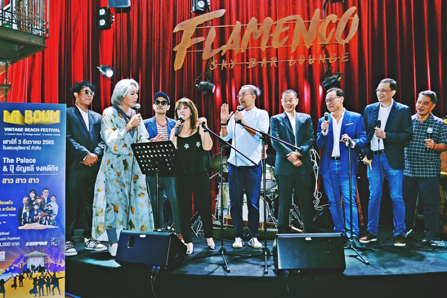 เรียกน้ำย่อย ด้วยบทเพลงดัง “รักเธอ” จากเสียงร้องและลีลาเป่าแซกโซโฟน ของฟอร์ด-สบชัย ไกรยูรเสน, เพลง “เติมใจให้กัน” จากมัม ลาโคนิค, เพลง “แค่บอกว่ารักเธอ” ปราโมทย์ วิเลปะนะ และเพลง “เพราะฉะนั้น” จากนักร้องรุ่นใหญ่ แต๋ม-ชรัส เฟื่องอารมณ์ ที่ยังเชื้อเชิญฮาร์ท-สุทธิพงษ์ ทัดพิทักษ์กุล พร้อม 3 ผู้จัดคอนเสิร์ต “LA BOUM Vintage Beach Festival” เป๊ก-สัณณ์ชัย เองตระกูล, เบิร์ด-กุลพงศ์ บุนนาค, น็อต-นุติ เขมะโยธิน และพิธีกรของงานแถลงข่าว อุ้ย-รวิวรรณ จินดา ขึ้นเวทีร่วมขับขานบทเพลงดัง จนเสียงร้องตาม “ฉันจึงทรนง” ดังกังวาล Flamengo Bangkok ชั้น 9 เอ็มควอเทียร์ กรุงเทพฯ