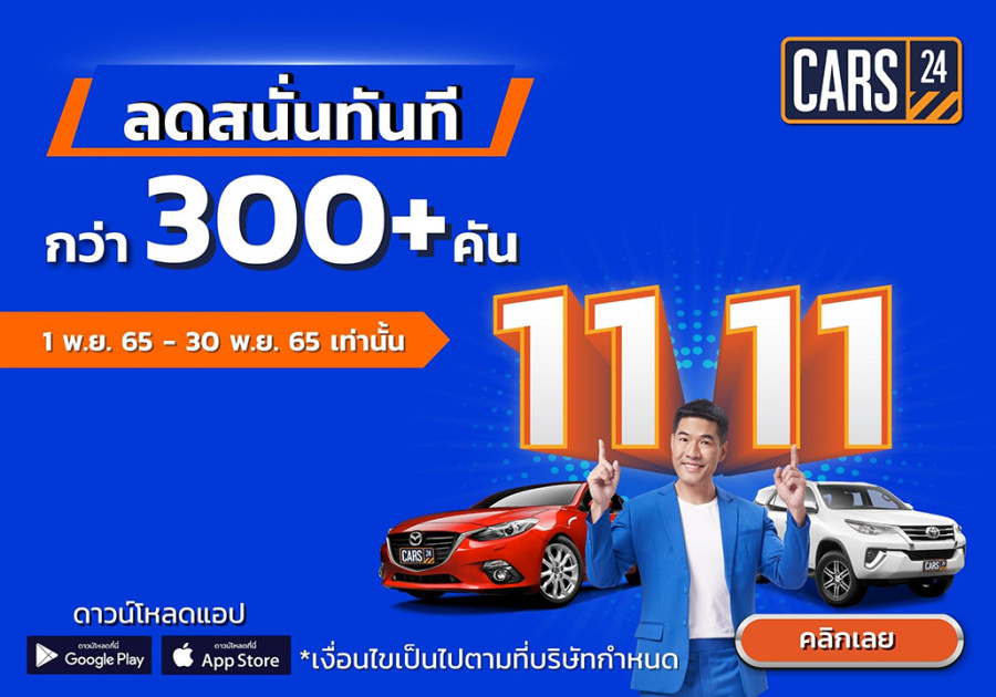 CARS24 (คาร์สทเวนตี้โฟร์) ศูนย์รวมรถมือสองออนไลน์เจ้าของฉายา “ยูนิคอร์นแห่งวงการรถมือสอง” มอบข้อเสนอที่ดีที่สุดส่งท้ายช่วงใกล้สิ้นปี ด้วยการคัดรถยนต์มือสองหลายรุ่นยอดนิยม หลายยี่ห้อดัง คุณภาพเกรดพรีเมียมมาให้ผู้บริโภคได้เลือกเป็นเจ้าของ ในราคาคุ้มค่าลดสนั่นกว่า 300 คัน ส่วนลดสูงสุดกว่า 100,000 บาท พร้อมทั้งดอกเบี้ยเรทพิเศษที่ร่วมกับพันธมิตรหลากหลายธนาคารและสถาบันการเงิน ให้ลูกค้าเลือกดีลได้ตามความต้องการ ตั้งแต่วันนี้ไปจนถึง 30 พฤศจิกายน 2565 เท่านั้น