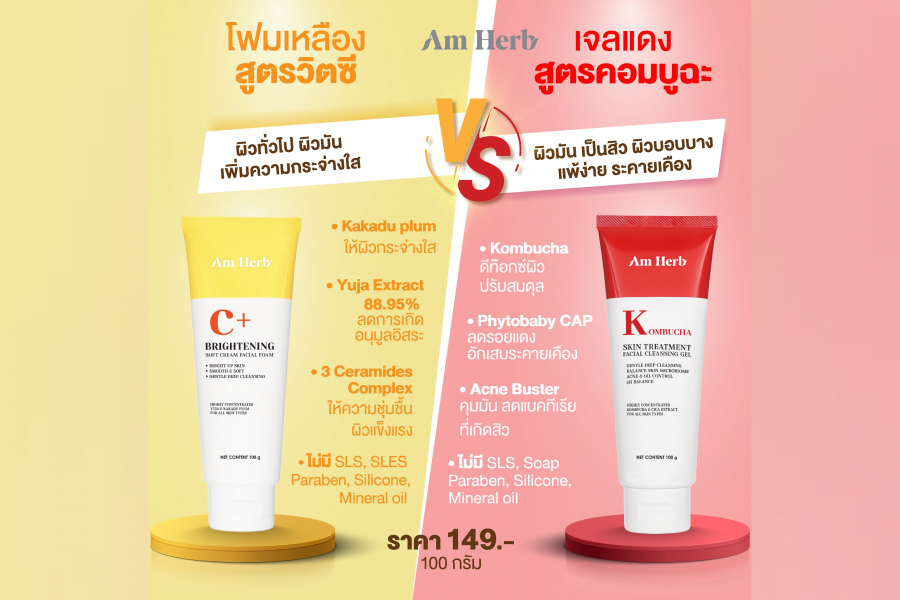 Am Herb ”บอกลาทุกปัญหาผิว” แบรนด์ที่เข้าใจปัญหาผิวของคนไทย มาพร้อมกับผลิตภัณฑ์ใหม่ เนื้อซอฟต์ครีมโฟมล้างหน้าสุดนุ่ม และ คลีนซิ่งเจลฟองโฟมละเอียด พร้อมมอบผิวสะอาดหมดจดทุกรูขุมขนให้ทุกท่านได้ลองเลือกใช้แล้ววันนี้ ออกมาทั้งหมด 2 สูตรสุดปิ๊งด้วยกัน AM HERB BRIGHTENING SOFT CREAM FACIAL FOAM และ AM HERB KOMBUCHA SKIN TREATMENT FACIAL CLEANSING GEL 2 สูตร ที่พร้อมจะดูแล ปกป้องผิวของคุณ ได้อย่างตรงจุดและทรงประสิทธิภาพ