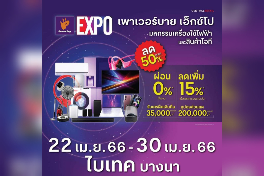 สำหรับไฮไลท์ สำคัญในการจัดงานมหกรรมเครื่องใช้ไฟฟ้า “Power Buy Expo” ในครั้งนี้ นอกจากเครื่องใช้ไฟฟ้า จะมีสินค้าไอที และอุปกรณ์อิเล็กทรอนิกส์ จากแบรนด์ขั้นนำมากกว่า 20 แบรนด์ ที่ได้รับการคัดสรรมาอยู่ในงานมากกว่า 1,000 รายการ ซึ่งช่วยตอบโจทย์การใช้ชีวิตให้กับทุกคนแล้วได้เป็นอย่างดีแลว “ภายในงาน ยังมีโปรโมชั่นสุดพิเศษ รวมถึงส่วนลดสินค้าเครื่องใช้ไฟฟ้าอีกมากกว่า 50% ที่มาพร้อมข้อเสนอและสิทธิพิเศษ ทั้งในส่วนของ บริการหลังการขาย และ บริการจัดส่งสินค้าถึงบ้านโดยไม่เสียค่าใช้จ่ายใดๆ ไปจนถึงการผ่อนชำระค่าสินค้า 0% จากบัตรเครดิตที่ร่วมรายการ ตลอดจนการรับเครดิตเงินคืนสูงสุด 35,000 บาท และ ลุ้นรับคูปองส่วนลดสำหรับซื้อสินค้าเพาเวอร์บาย มูลค่ารวมกว่า 200,000 บาท