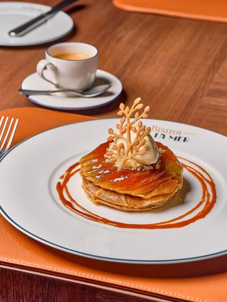 Bistrot De La Mer ยังรวมหอยนางรมสดที่เราโปรดปรานจากหลายประเทศเอามาไว้ที่นี่ เช่น Gillardeau #3, Fine De Claire #2 และ Tsarskaya #3, Osetra Prestige และ Baeri Royal caviar หรือเมนูทางเลือกอื่นๆ อาทิ สเต็กวากิว หรือเมนูมังสวิรัติ อย่าง สเต็กมะเขือม่วงย่างและหอยแมลงภู่เคี่ยวน้ำซุป ปิดท้ายมื้อที่แสนพิเศษ ด้วยของหวานขึ้นชื่อของประเทศฝรั่งเศสอย่าง ทาร์ตตาแตง