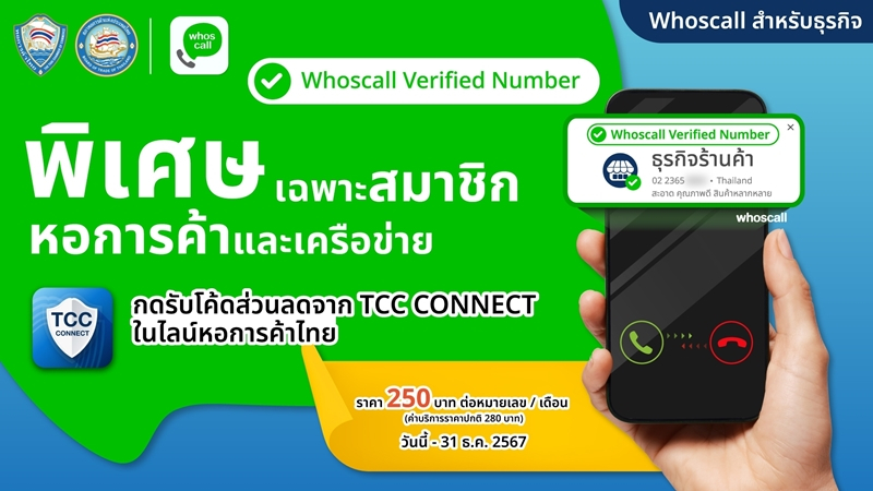 กรุงเทพฯ ประเทศไทย – 24 มิถุนายน 2567: หอการค้าไทย และสภาหอการค้าแห่งประเทศไทย และ บริษัท Gogolook (โกโกลุก) จำกัด ผู้ให้บริการทางด้านเทคโนโลยีเพื่อความเชื่อมั่น (TrustTech) และผู้พัฒนาแอปพลิเคชัน Whoscall ร่วมยกระดับการสื่อสาร พัฒนาสัมพันธ์กับลูกค้า และสร้างสภาพแวดล้อมทางธุรกิจที่ปลอดภัยและน่าเชื่อถือ ด้วยบริการยืนยันหมายเลข Whoscall Verified Business Number ลงทะเบียนและยืนยันเบอร์โทรศัพท์ เพื่อสร้างความเชื่อมั่นให้ลูกค้าในการรับสาย