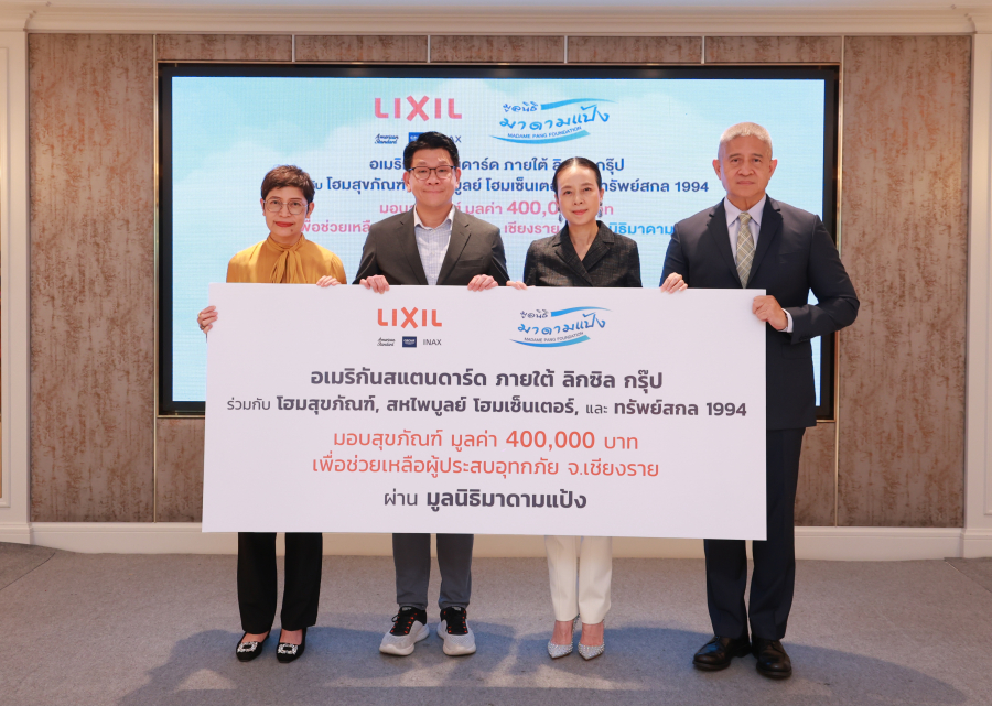อเมริกันสแตนดาร์ด ภายใต้ ลิกซิล กรุ๊ป ร่วมกับ โฮมสุขภัณฑ์, สหไพบูลย์ โฮมเซ็นเตอร์, และ ทรัพย์สกล 1994 มอบสุขภัณฑ์ มูลค่า 400,000 บาท เพื่อช่วยเหลือผู้ประสบอุทกภัย จ.เชียงราย ผ่าน มูลนิธิมาดามแป้ง