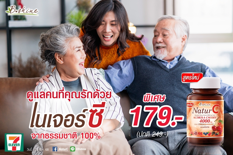 “บีไชน์ เนเจอร์ซี สูตรใหม่” ขนาดบรรจุ 30 เม็ด แถมฟรีอีก 5 เม็ดในขวด รวมเป็น 35 เม็ด ได้จัดโปรโมชั่นสุดคุ้มช่วยประหยัด เหลือเพียง 179 บาท จากปกติ ราคา 249 บาท ตั้งแต่วันนี้ – 23 มกราคม 2568 หาซื้อได้ที่ร้านเซเว่น อีเลฟเว่น ทุกสาขาทั่วประเทศ ปีใหม่ 2568 นี้ใครยังไม่ได้ให้ของขวัญคนที่คุณรัก มอบของขวัญดีๆ ให้คนที่คุณรักด้วยบีไชน์ เนเจอร์ซี เป็นตัวแทนความห่วงใยจากคุณ สามารถดูข้อมูลเพิ่มเติมได้ที่ www.bshine.co.th, FB : https://www.facebook.com/BnpHealth และ Line : @Bshine
