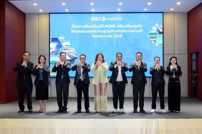 สำนักงานส่งเสริมวิสาหกิจขนาดกลางและขนาดย่อม หรือ สสว.ร่วมกับ มหาวิทยาลัยศิลปากร และ สถาบันเทคโนโลยีพระจอมเกล้าเจ้าคุณทหารลาดกระบัง แถลงความสำเร็จการดำเนินงานโครงการขับเคลื่อนให้ MSME ปรับเปลี่ยนธุรกิจให้ตอบสนองต่อมาตรฐาน/การกีดกันทางการค้า ปีงบประมาณ 2568